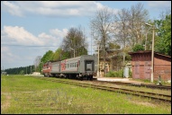 | Пригородный поезд (тепловозы ТЭП70-0215, ТЭП70-0240 + 2 вагона) сообщением Бологое - Осташков прибывает на станцию Куженкино, Тверская обл. Автор: Максимов Юрий | Фото сделано 30.IV.2017, опубликовано 11.V.2017.
