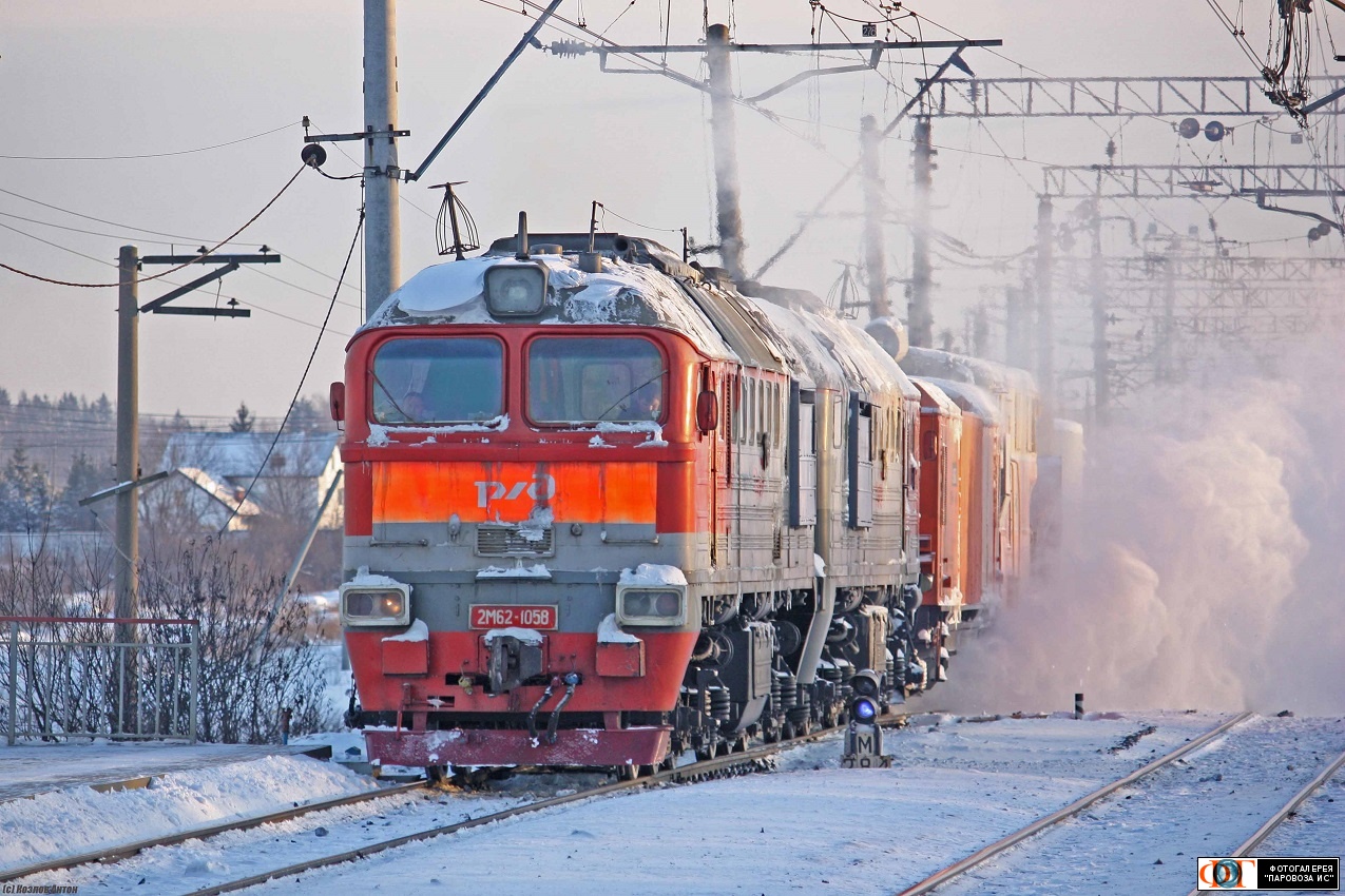 | Тепловоз 2М62-1058 с пневмоочистительной машиной ПОМ1М и снегоочистителем СДПМ2 на станции Бекасово-Сортировочное, Москва Автор: Козлов Антон | Фото сделано 7.I.2017, опубликовано 14.V.2017.