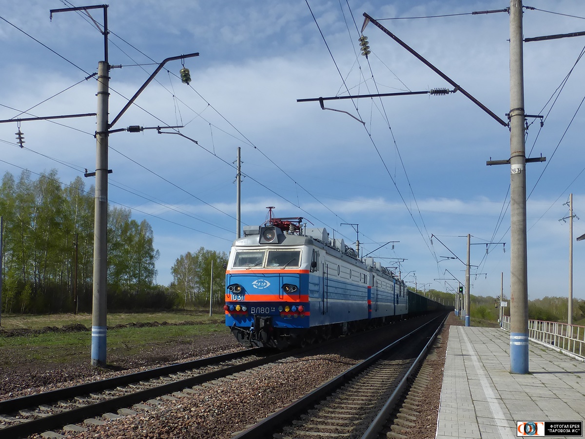 | Электровоз ВЛ80ТК-1031/???? с грузовым поездом, о.п. Коныгино (Каныгино), перегон Крупская - Жерлык, линия Абакан - Тайшет, Красноярский край Автор: Никич | Фото сделано 11.V.2017, опубликовано 16.V.2017.