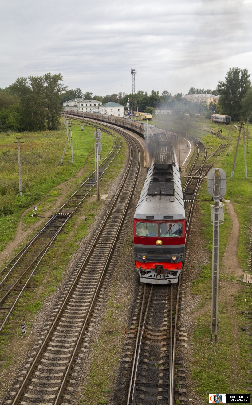 | Тепловоз ТЭП70-0084 в голове поезда №664 Псков - Москва, станция Псков-Пассажирский (вертикальный кадр), Псковская обл. Автор: Максимов Юрий | Фото сделано 20.VIII.2017, опубликовано 10.XI.2017.
