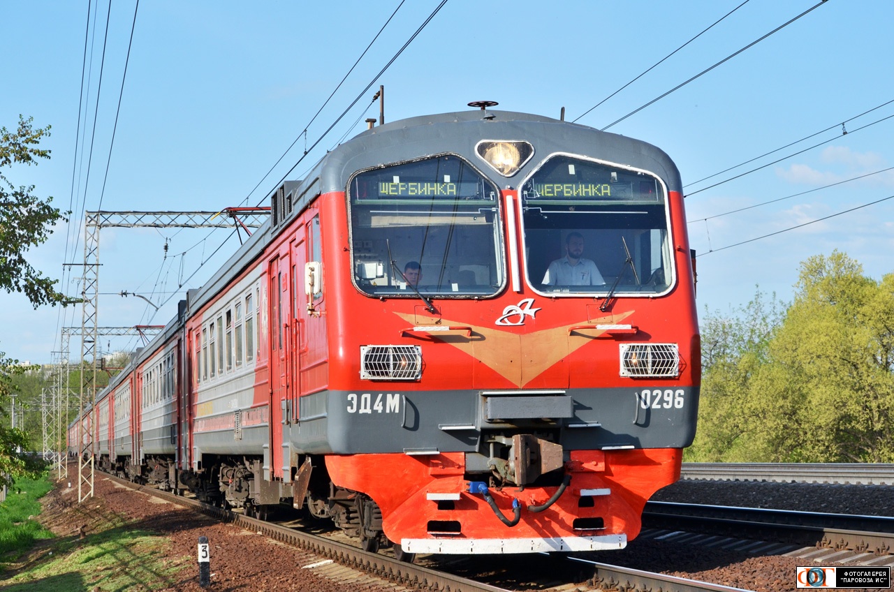| Электропоезд ЭД4М-0296 на перегоне Люблино-Южное (Люблино-Сортировочное) - Царицыно, Москва Автор: Артем | Фото сделано 10.V.2015, опубликовано 1.I.2018.
