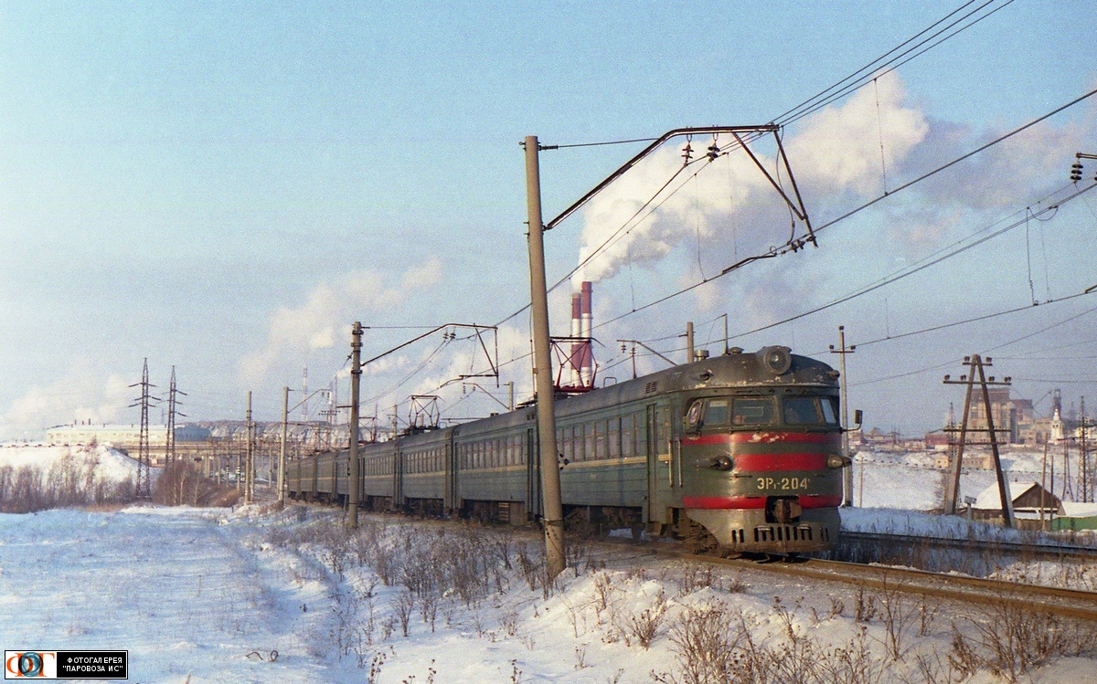 | Электропоезд ЭР1-204, перегон Березники - Калийная, Пермский край Автор: sergius-221 | Фото сделано 3.XII.2001, опубликовано 10.VI.2018.