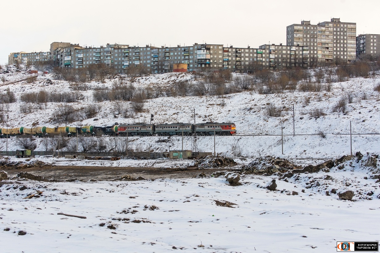 | Тепловоз 3М62У-0064 с грузовым поездом, перегон Комсомольск-Мурманский - Мурманск, Мурманская обл. Автор: Виталий | Фото сделано 29.IV.2018, опубликовано 23.X.2018.