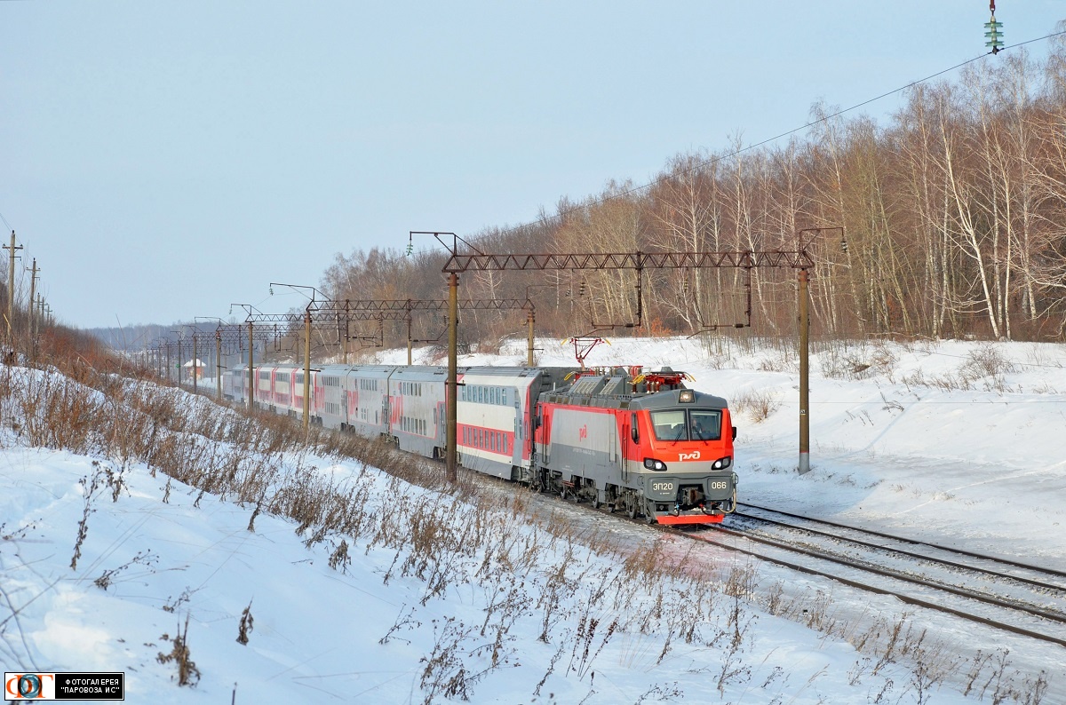 | Электровоз ЭП20-066 с пассажирским поездом №104 Москва - Адлер на перегоне Ряжск-I - Александро-Невская, Рязанская обл. Автор: Максим | Фото сделано 1.II.2019, опубликовано 4.II.2019.