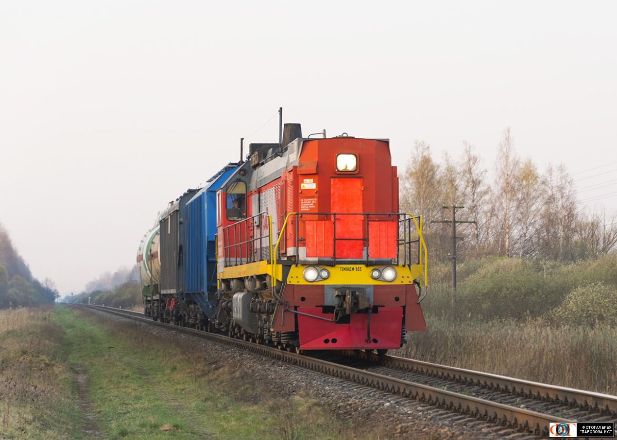 | Тепловоз ТЭМ18ДМ-855 со сборным поездом, перегон Дуловская - Черская, Псковская обл. Автор: тишкин роман петрович | Фото сделано 24.IV.2019, опубликовано 28.IV.2019.