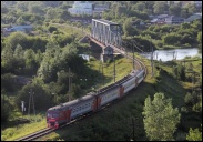 | Электровоз 2ЭС6-125 "Синара" с грузовым поездом на мосту через р. Нейва, станция Алапаевск, Свердловская обл. Автор: Александр | Фото сделано 1.VI.2019, опубликовано 2.VI.2019.