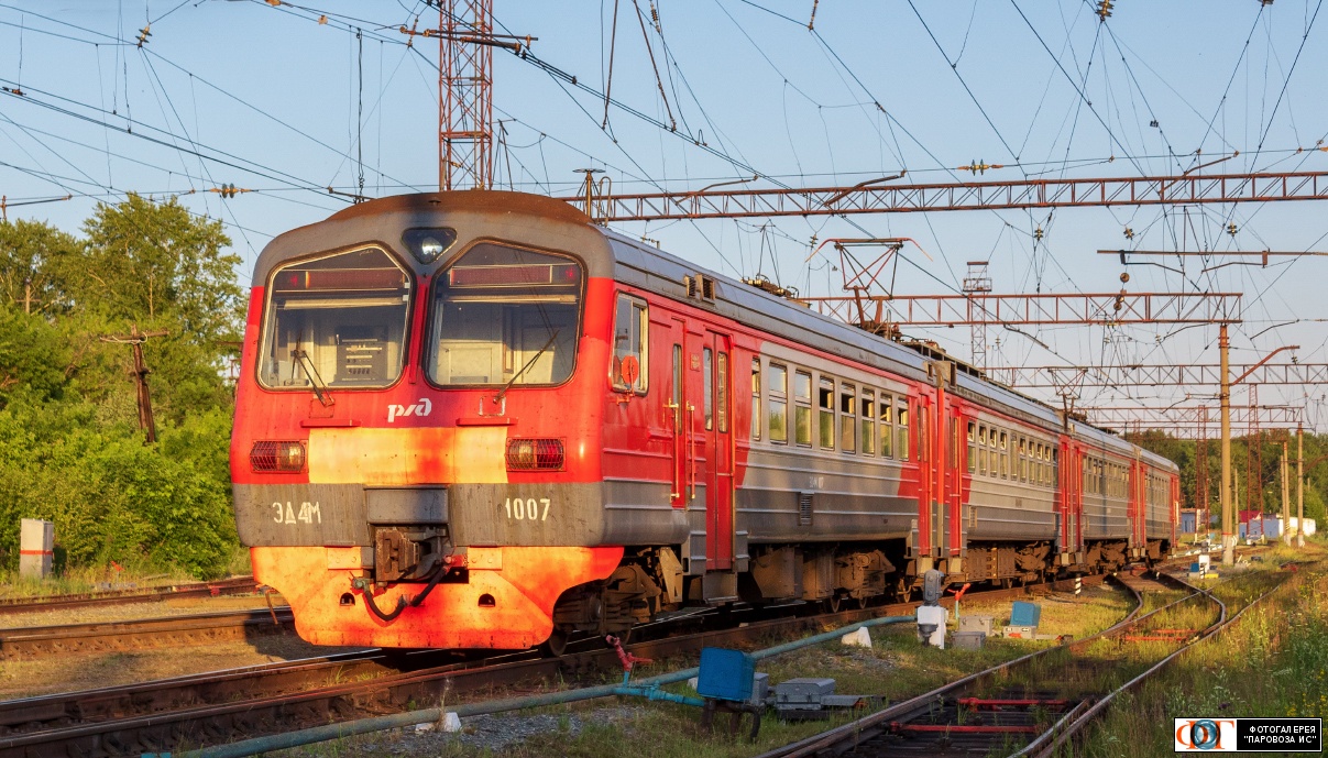 | Электропоезд ЭД4М-1007/1008 сообщением Екатеринбург-Пассажирский - Алапаевск, станция Алапаевск, Свердловская обл. Автор: Александр | Фото сделано 17.VII.2019, опубликовано 18.VII.2019.