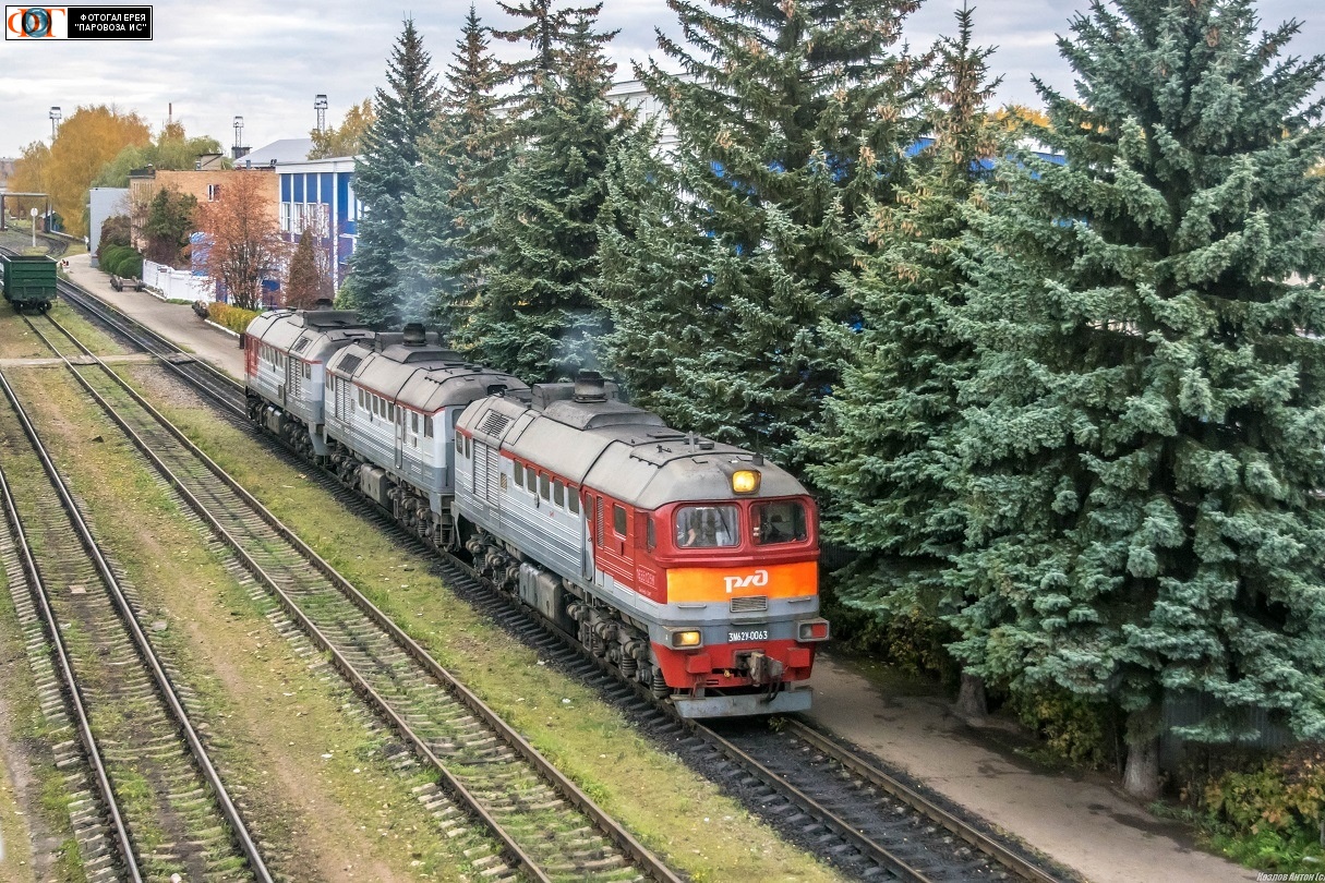 | Тепловоз 3М62У-0063 на станции Калуга-I, Калужская обл. Автор: Козлов Антон | Фото сделано 5.X.2019, опубликовано 22.XI.2019.