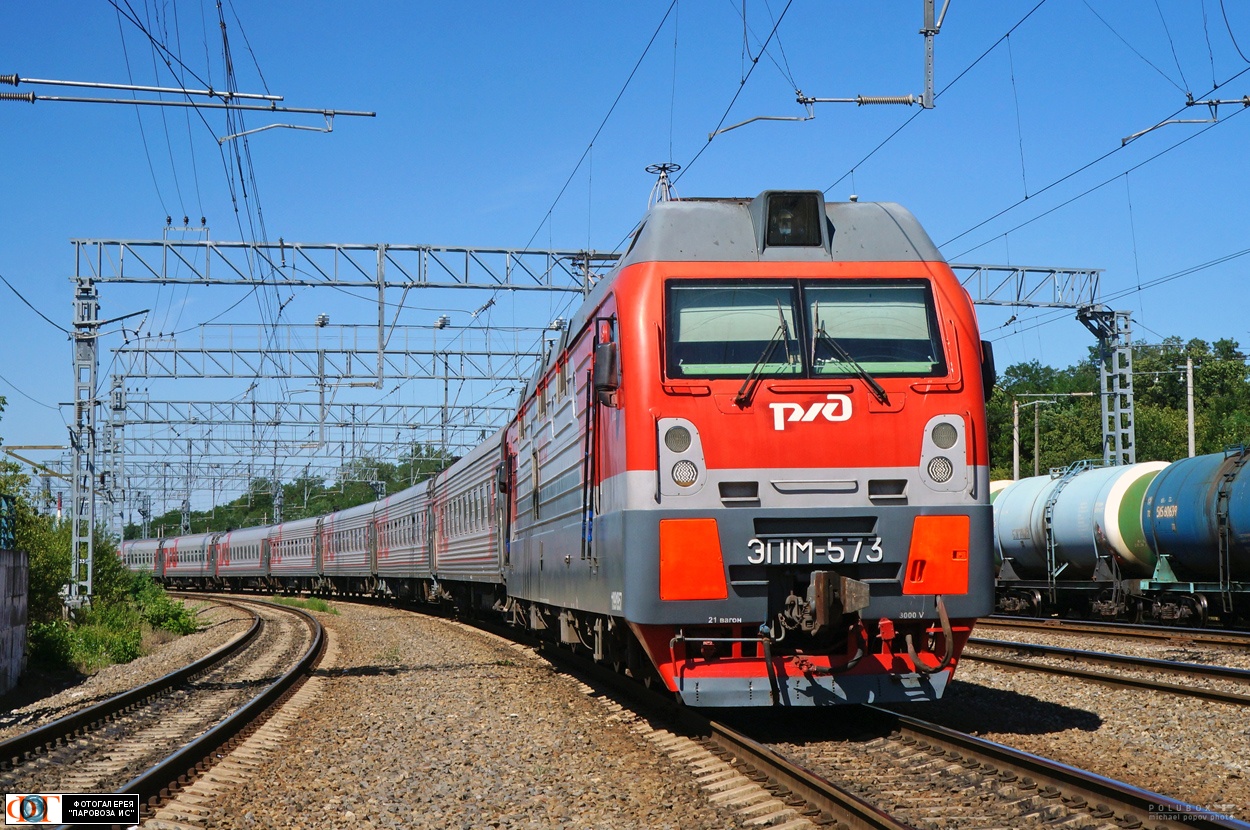 | Электровоз ЭП1М-573 с поездом № 501 Анапа - Киров, станция Юровский, Краснодарский край Автор: Михаил Попов *RUS93* | Фото сделано 16.VIII.2020, опубликовано 5.IX.2020.