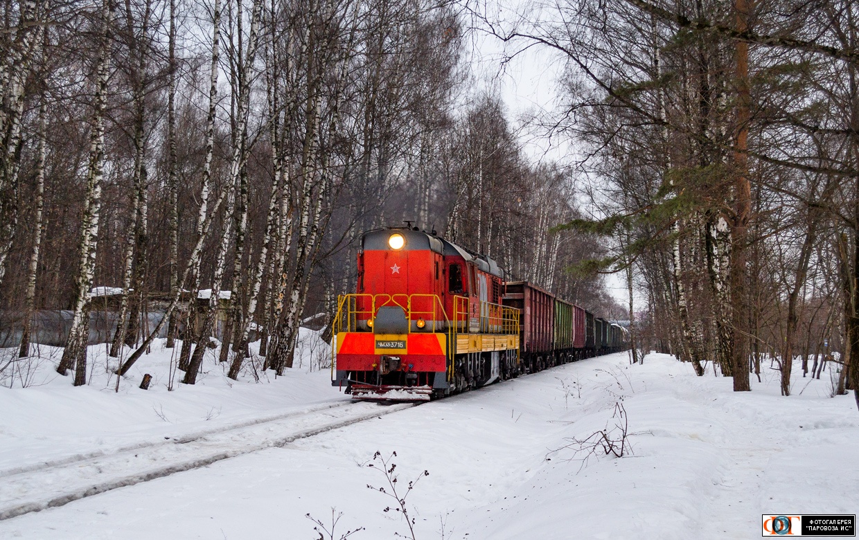 | Тепловоз ЧМЭ3-3716 с вагонами на перегоне Заводская - Обменная, промышленная линия МКГЗ, Москва Автор: Алексей Боев (колл.) | Фото сделано 16.II.2022, опубликовано 20.II.2022.