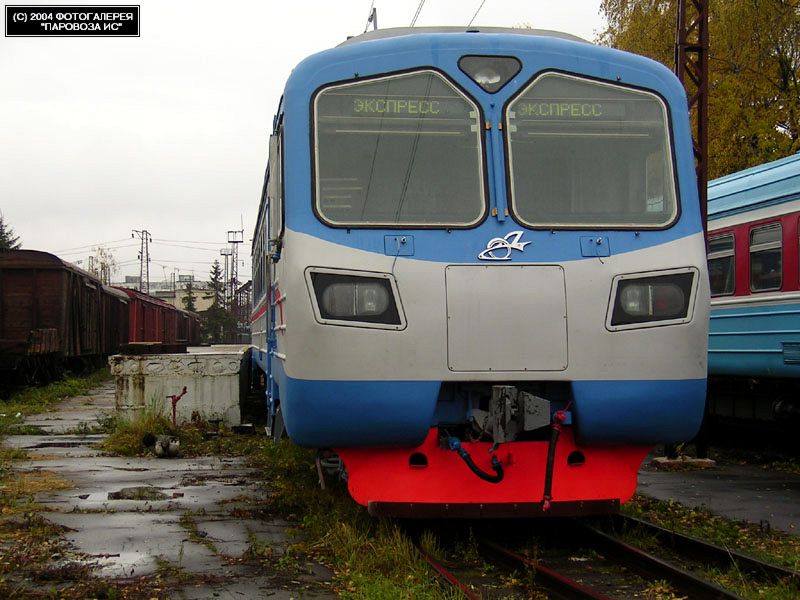 | Электропоезд ЭД4Э-0002 { ED4E-0002 EMU train }, Щербинка { Shcherbinka }, Москва Автор: Плотников П. | Фото сделано 9.X.2004, опубликовано 8.XI.2004.